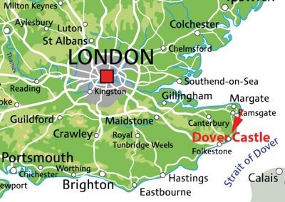 In spektakulärer Lage auf den „White Cliffs“ der Küste von Kent thront Europas größte, besterhaltene und wohl auch imposanteste mittelalterliche Wehranlage: Das Dover Castle. Über viele Jahrhunderte beschützte das älteste Fort Englands die Küste vor feindlicher Invasion. Daher wird es auch als „Schlüssel zu England“ bezeichnet.